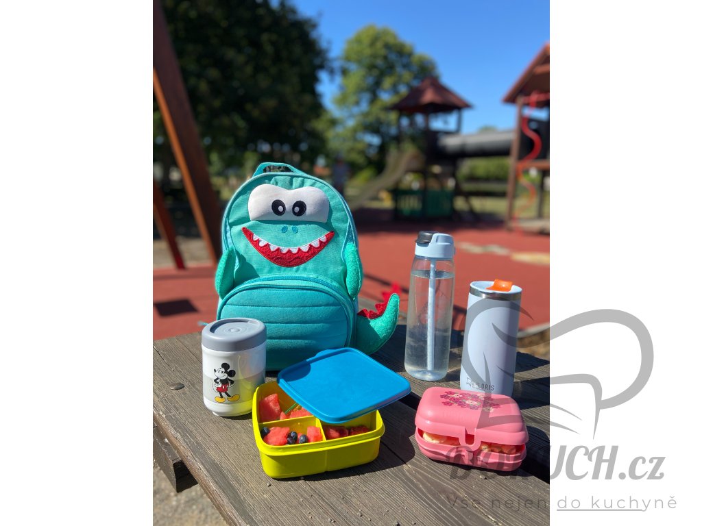 Přední kapsa s termofolii na uchování chladné svačiny, nebo na bezpečný převoz mokrých plavek ze školy plavání.