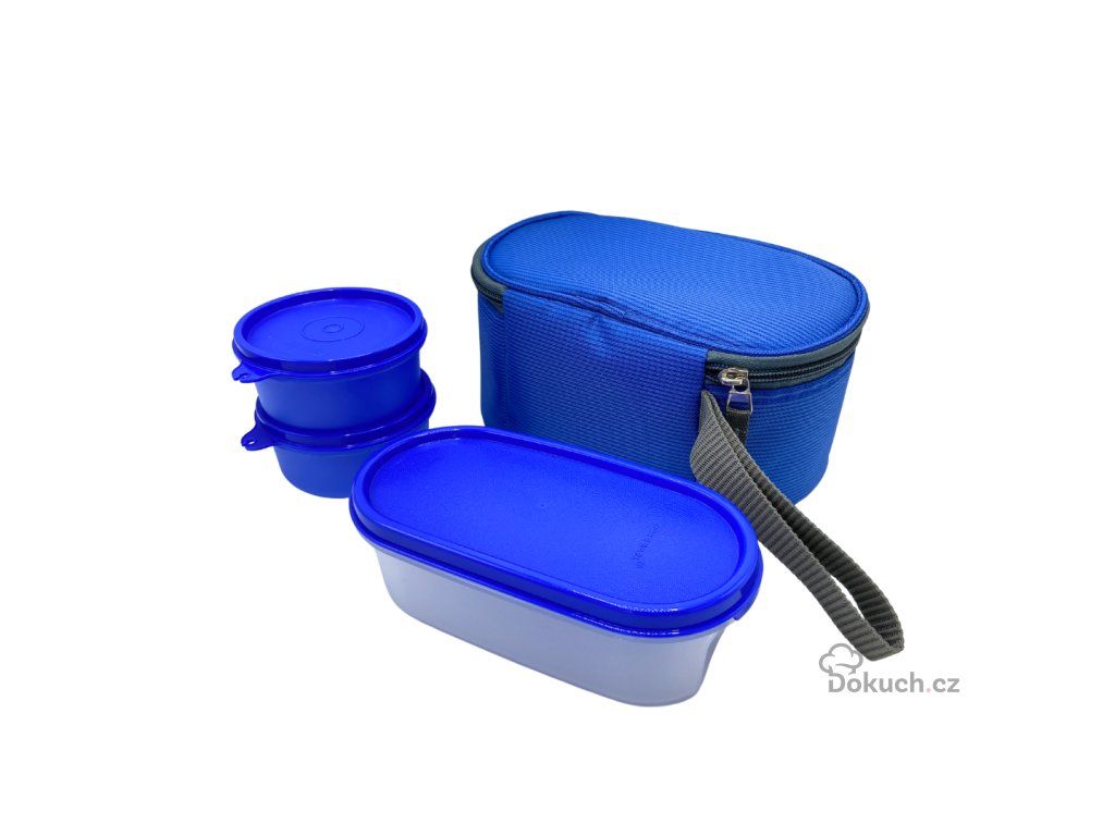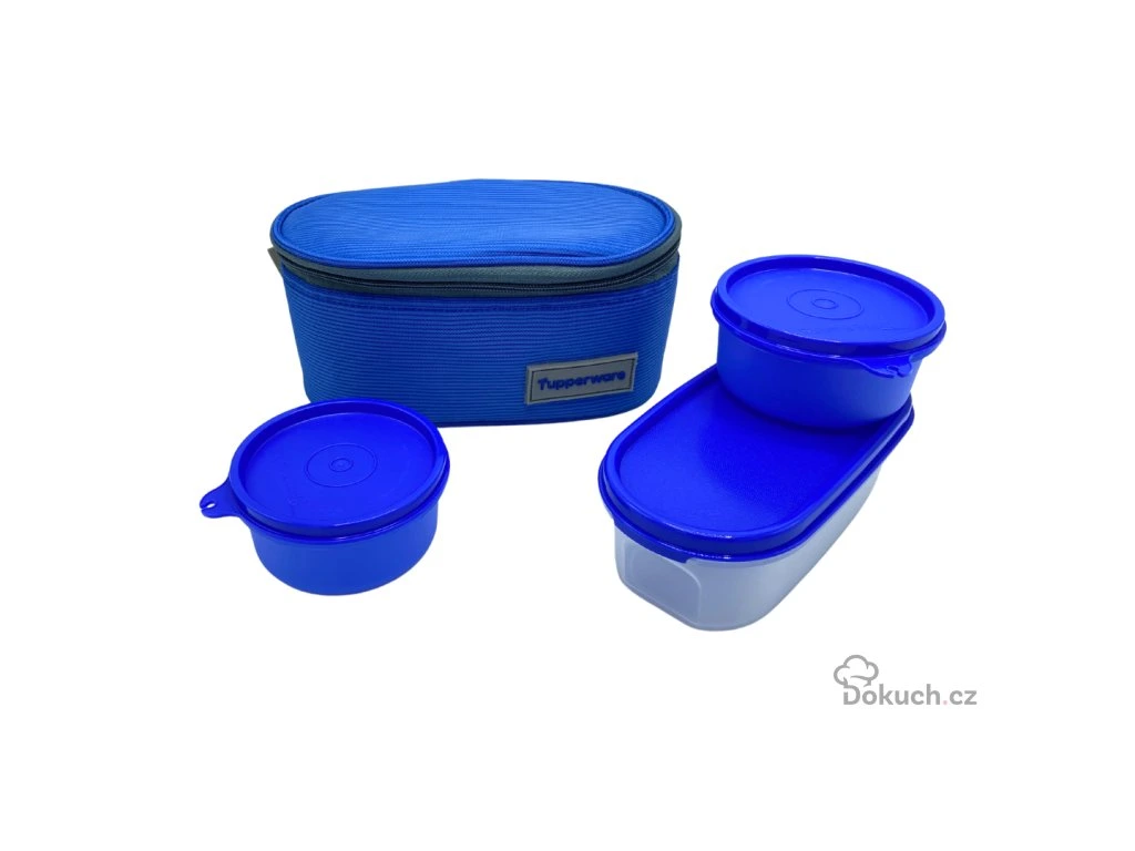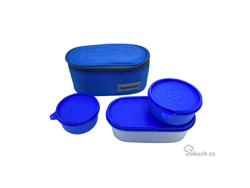 Cestovní sady jsou limitovanou edicí od Tupperware. Většina tašek má držadlo do ruky i popruh přes rameno.