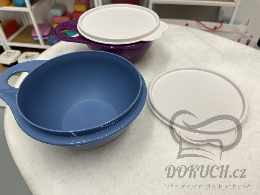Víceúčelová mísa se všemi vlastnostmi, které jsou očekávané od Tupperware míchací mísy. Tato mísa je pěkně tvarovaná a lehká na ruční mixování a pro lepší manipulaci má nepřekonatelný úchyt s otvorem pro palec.