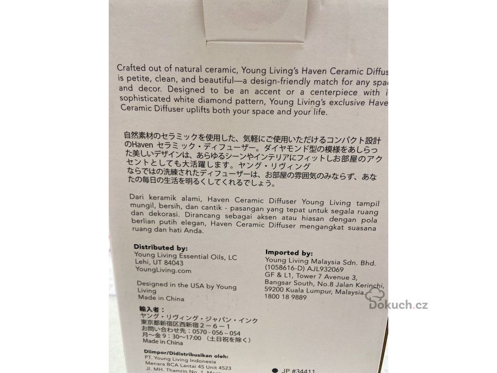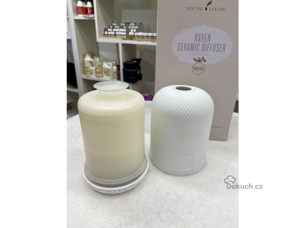 Haven Ceramic Diffuser od Young Living je kompaktní ultrazvukový difuzér, který jemně provoní menší prostor a zároveň slouží jako stylové ambientní světlo. Díky elegantnímu keramickému krytu krásně zapadne do každého interiéru.