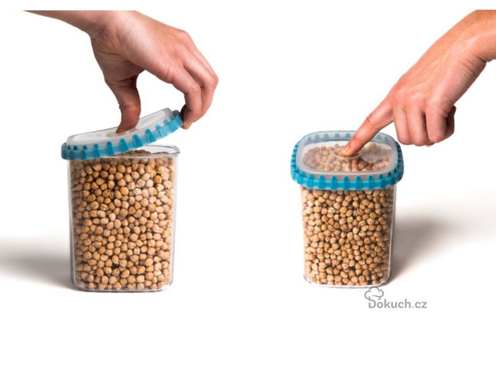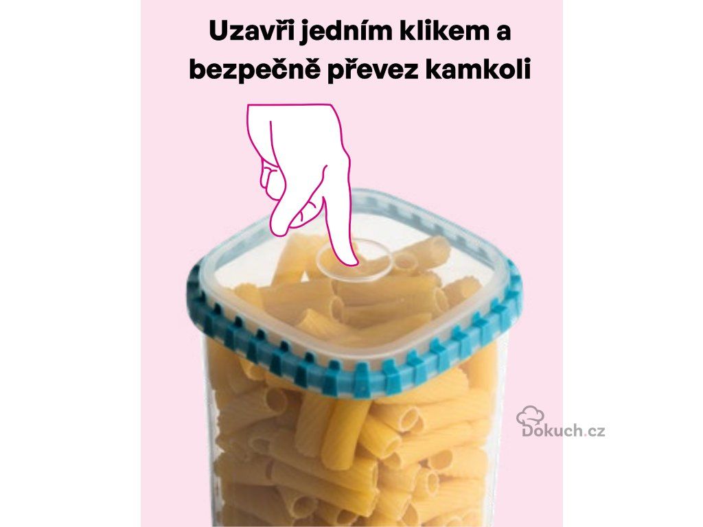 1 KLIK Hranatá dóza je chytré řešení pro každodenní skladování potravin – bez hledání víček, bez přesypávání a bez zbytečného nepořádku.