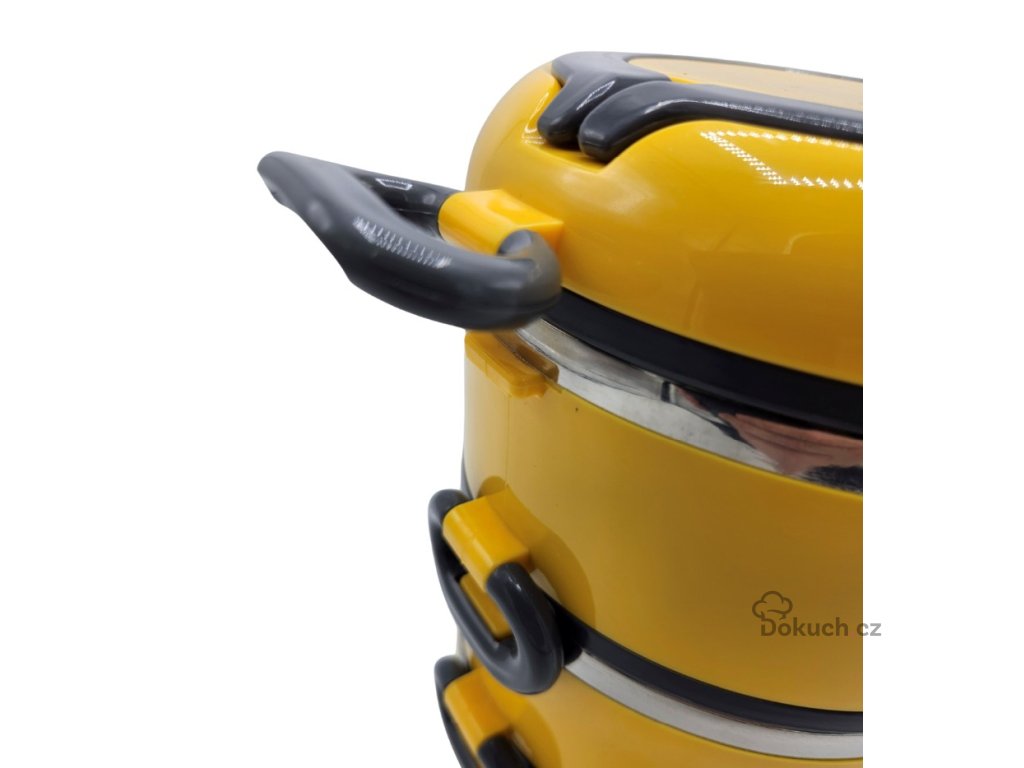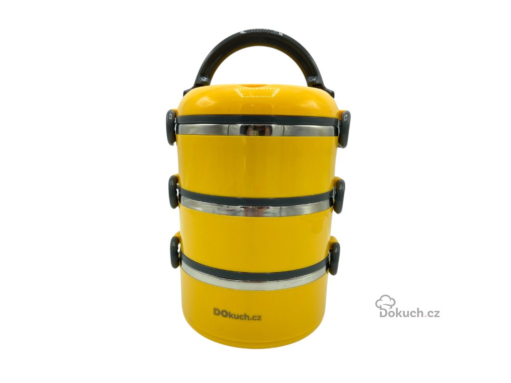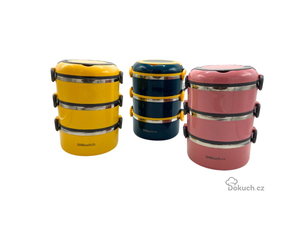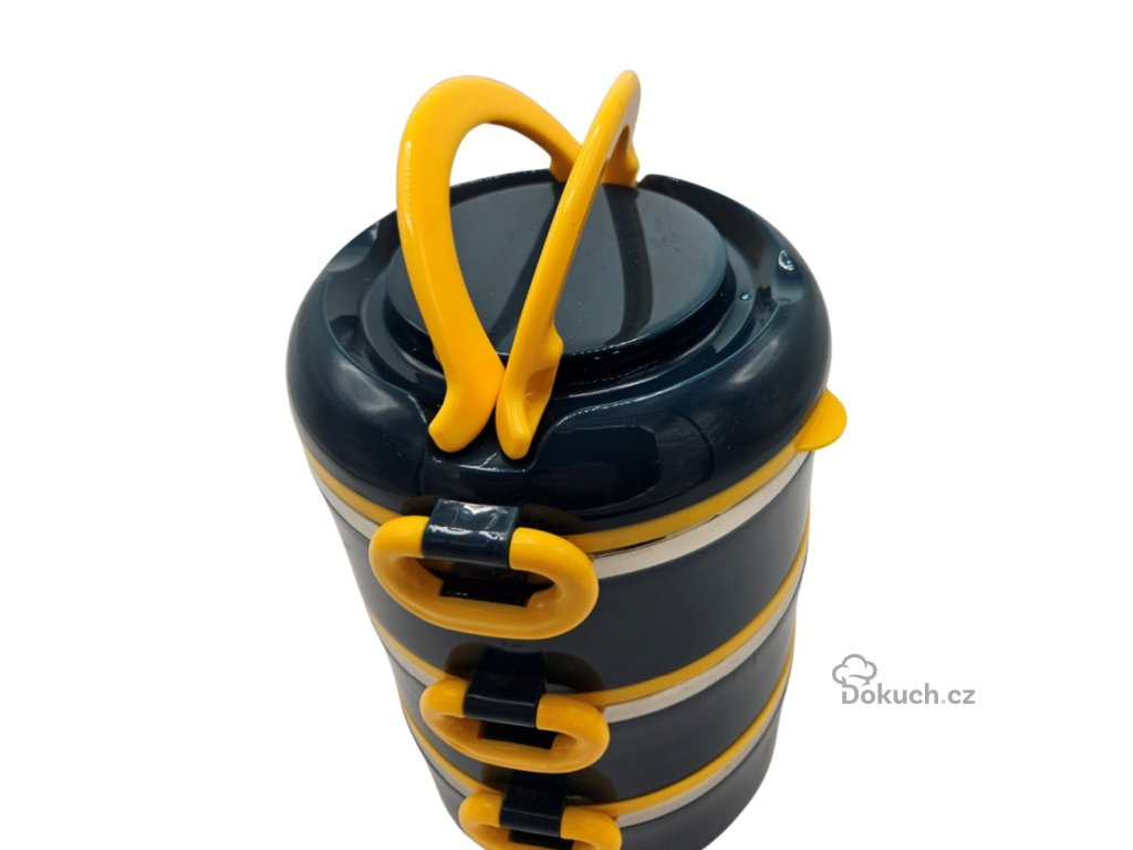 Tento jídlonosič se třemi samostatnými miskami od DOKUCH.CZ je praktickým řešením pro přenášení teplých obědů i večeří. Každá miska má vlastní víko se silikonovým těsněním a parním ventilkem, což je velká výhoda zejména při přenášení plných porcí.