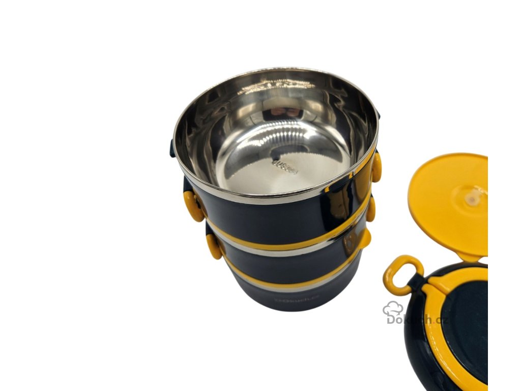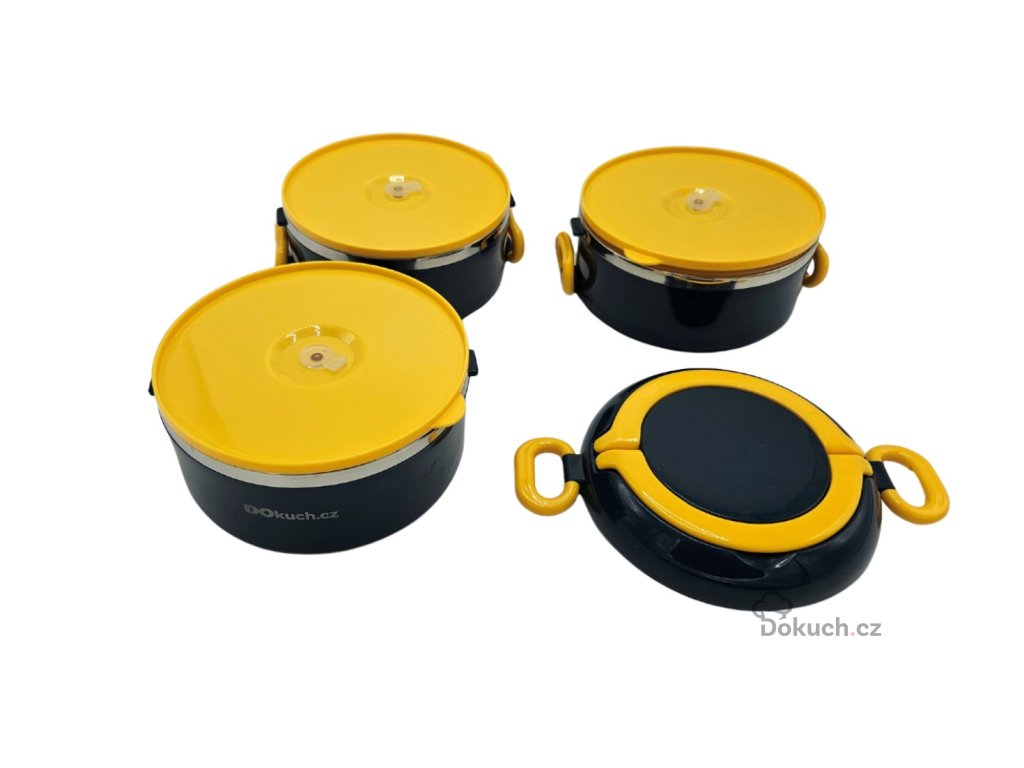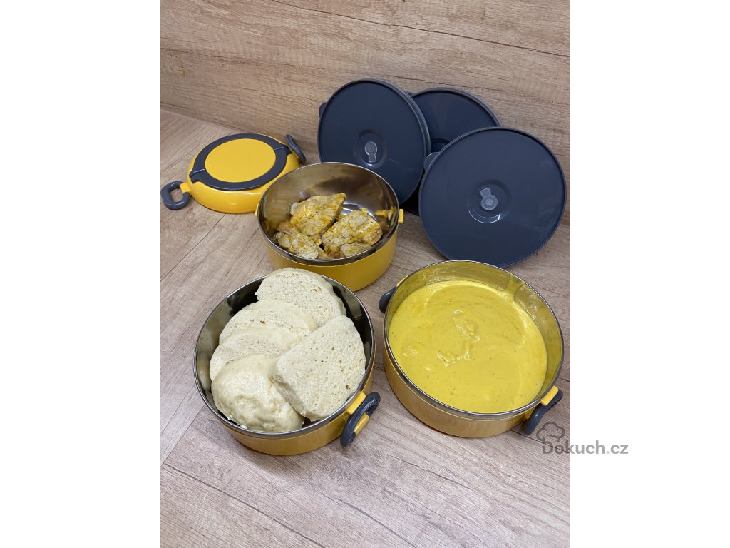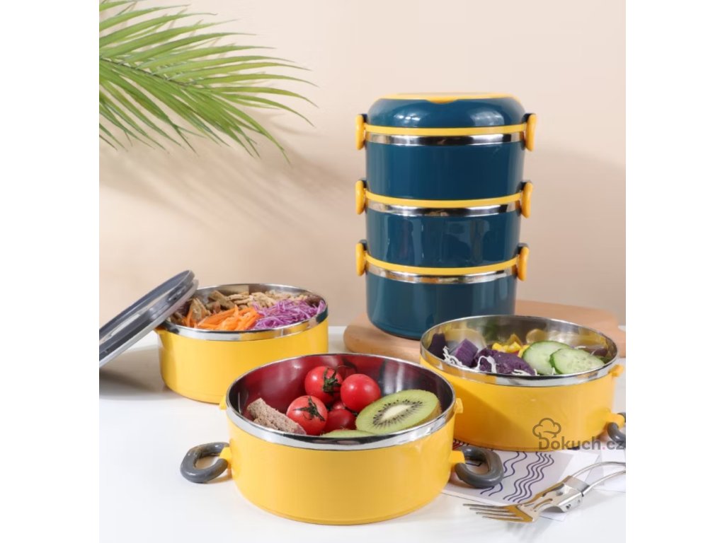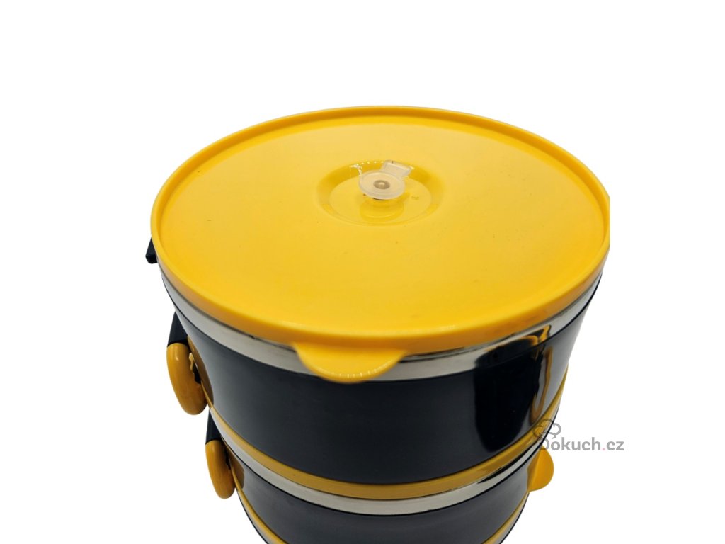 Tento jídlonosič se třemi samostatnými miskami od DOKUCH.CZ je praktickým řešením pro přenášení teplých obědů i večeří. Každá miska má vlastní víko se silikonovým těsněním a parním ventilkem, což je velká výhoda zejména při přenášení plných porcí.