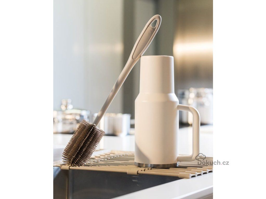 2v1 kartáč Kochblume je chytré řešení, které spojuje velký kartáč na lahve a hrnky s úzkým kartáčkem na brčka – a ten je navíc schovaný přímo v rukojeti.