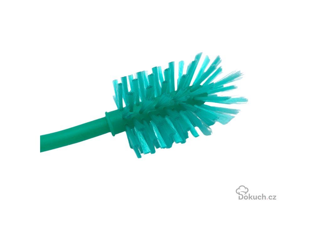 Čelo těla štětky je kulaté, ale štětinky jsou nasměrovány dopředu i do stran, což umožní vyčistit i ostré strany v láhvi či nádobě a zároveň neponičí ani nepoškrábe dno nádoby, protože všude kolem funkční části jsou štětiny.