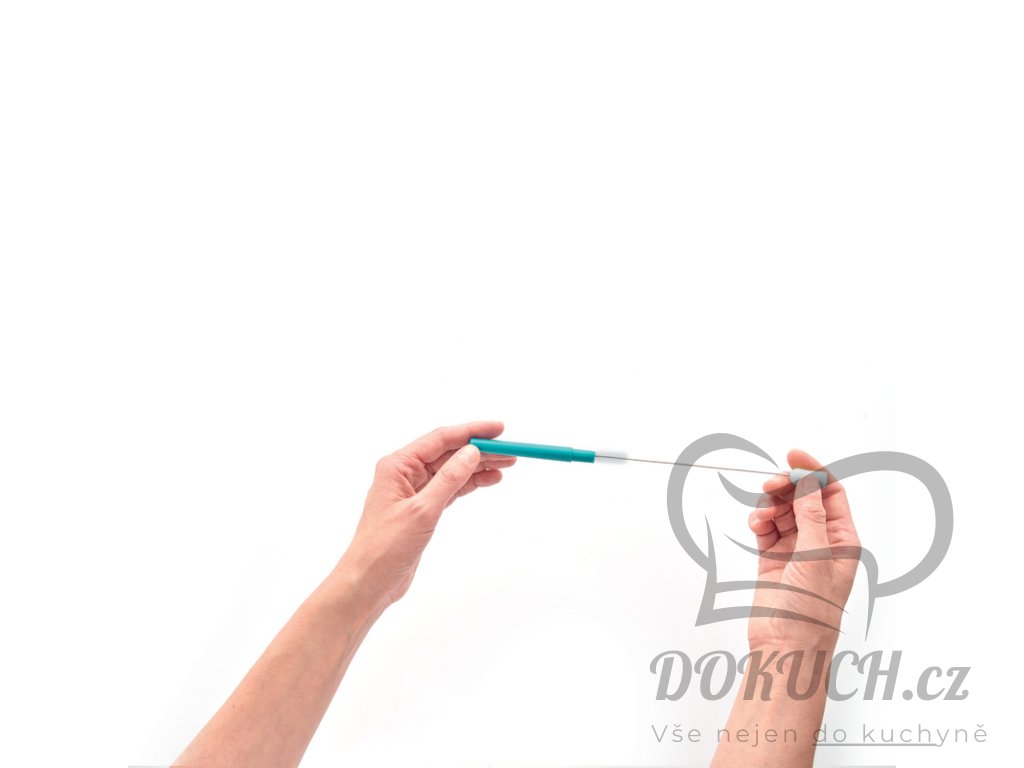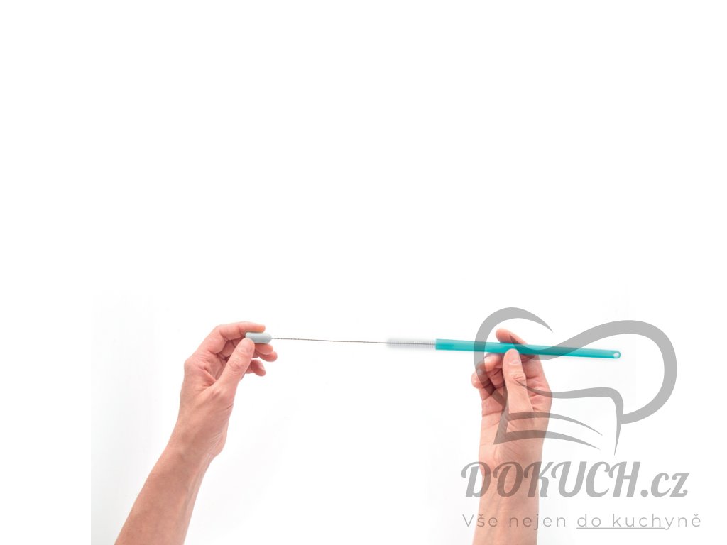 Jemná , dostatečně dlouhý kartáček na čištění brček z řady Eko. Z jedné strany kartáček se silikonovými štětinkami. Na druhé straně praktické plastové držátko.