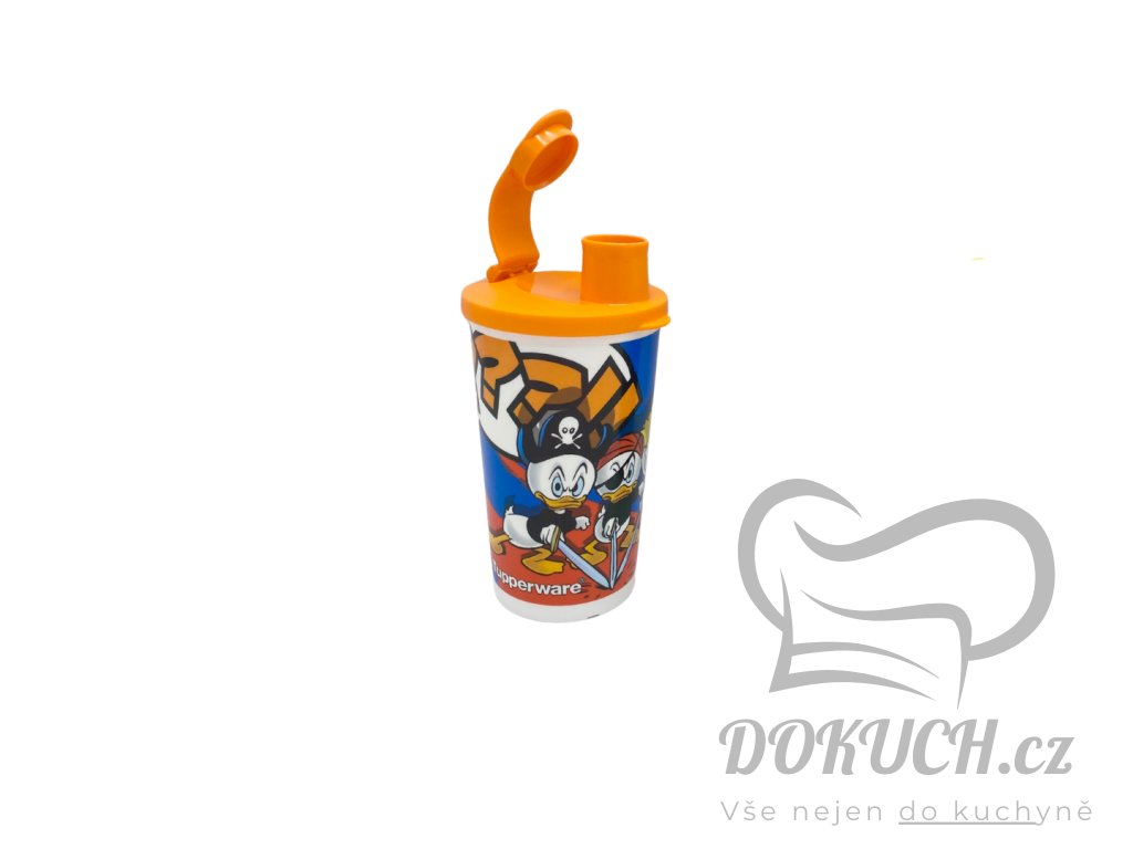 - Oranžové víko, bílý kelímek s potiskem kačeří příběhy, piráti