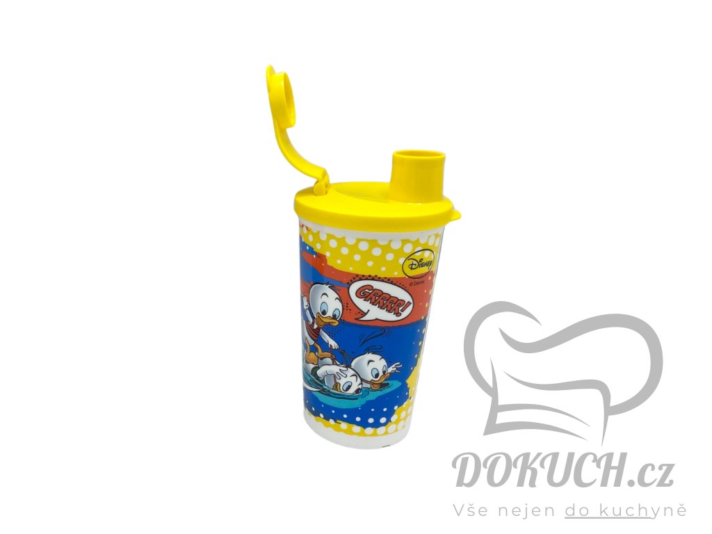 - Žluté víko, bílý kelímek s potiskem kačeří příběhy.