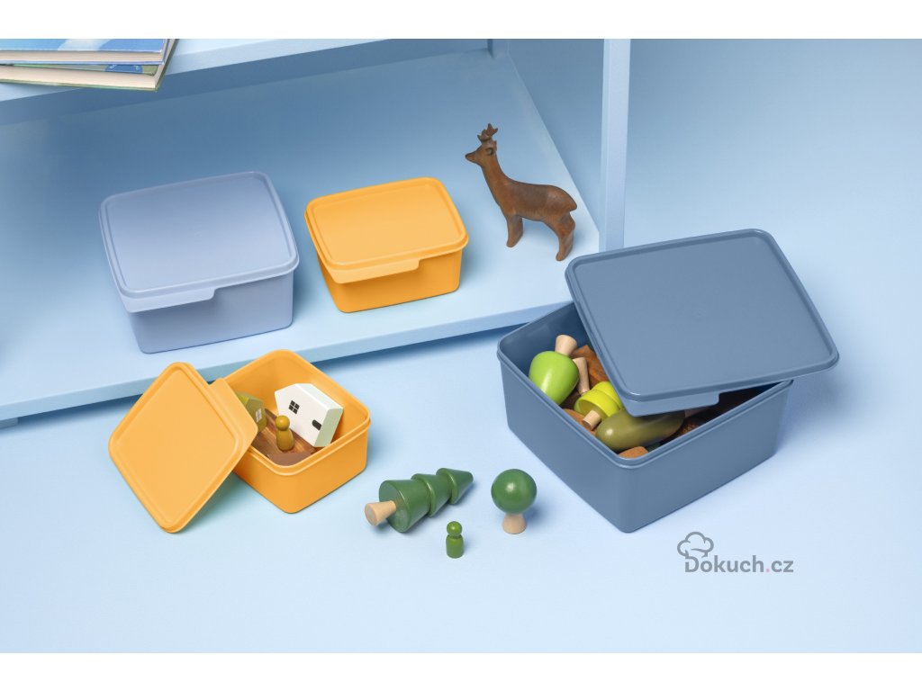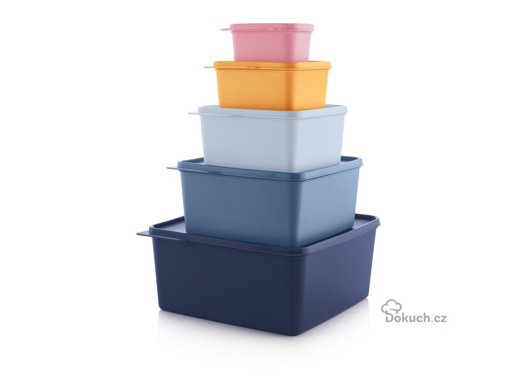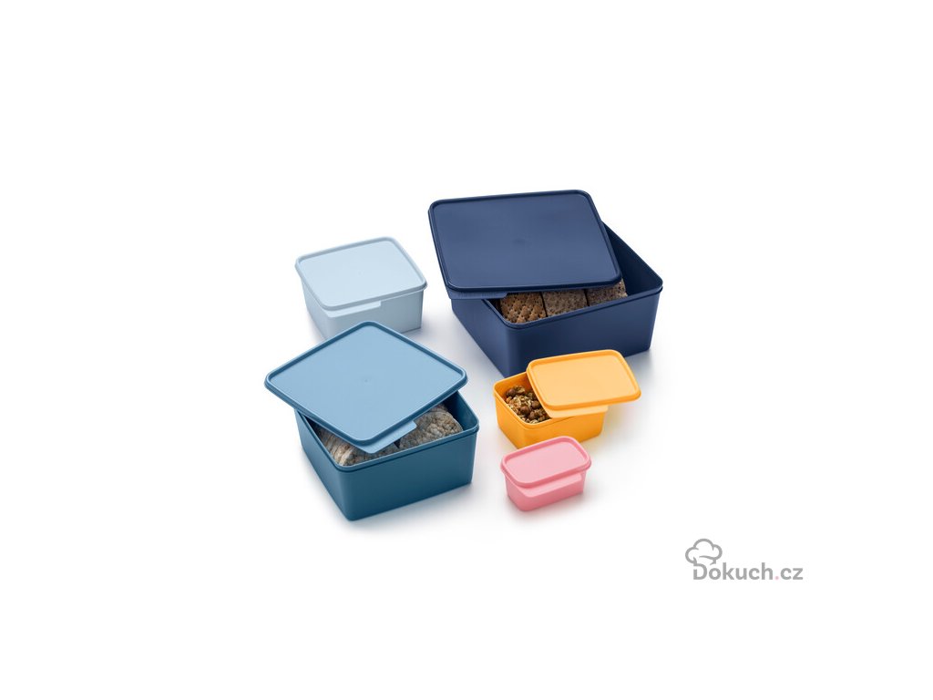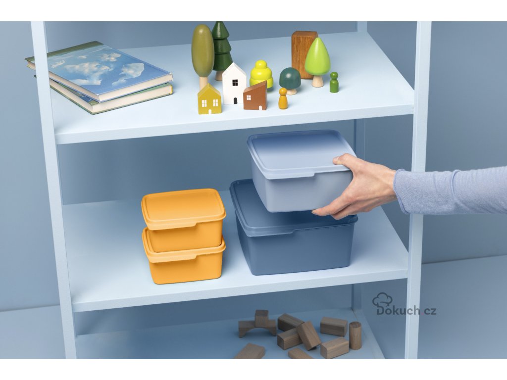 Velká ergonomická ouška na víčku zajišťují pohodlné otevírání pro všechny členy rodiny. Nádoby se dají stohovat na sebe, takže v lednici nebo ve skříňce ušetří spoustu místa. Materiál je zvenku jemně strukturovaný (odolný proti škrábancům), uvnitř hladký – snadno se tedy udržuje a jídlo se nelepí na stěny.