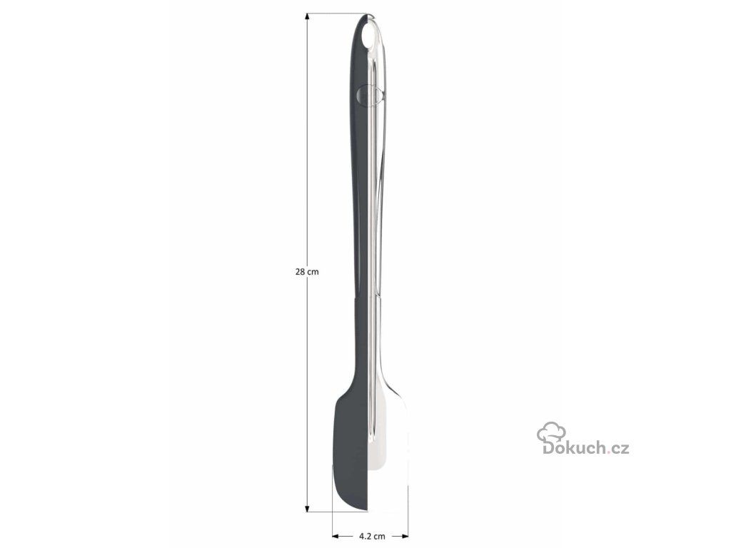 Díky pevné konstrukci s ocelovým jádrem je stěrka stabilní a příjemně se s ní pracuje. Silikon je šetrný k nádobí, takže se nemusíte bát použít ji ani na pánve nebo hrnce s nepřilnavým povrchem.