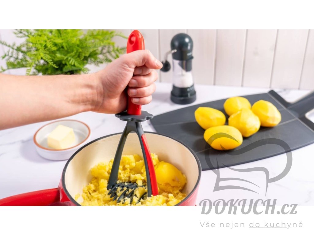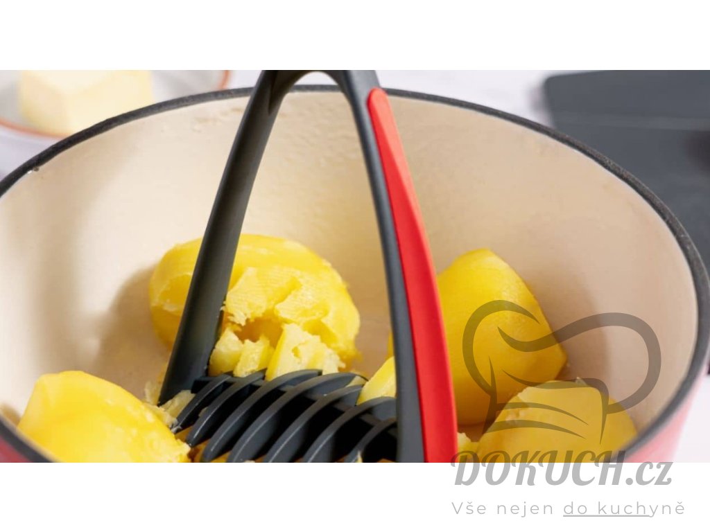 - Tepelná odolnost až do 200 °C: Šťoukadlo na brambory můžete bez váhání používat v horkých hrncích.