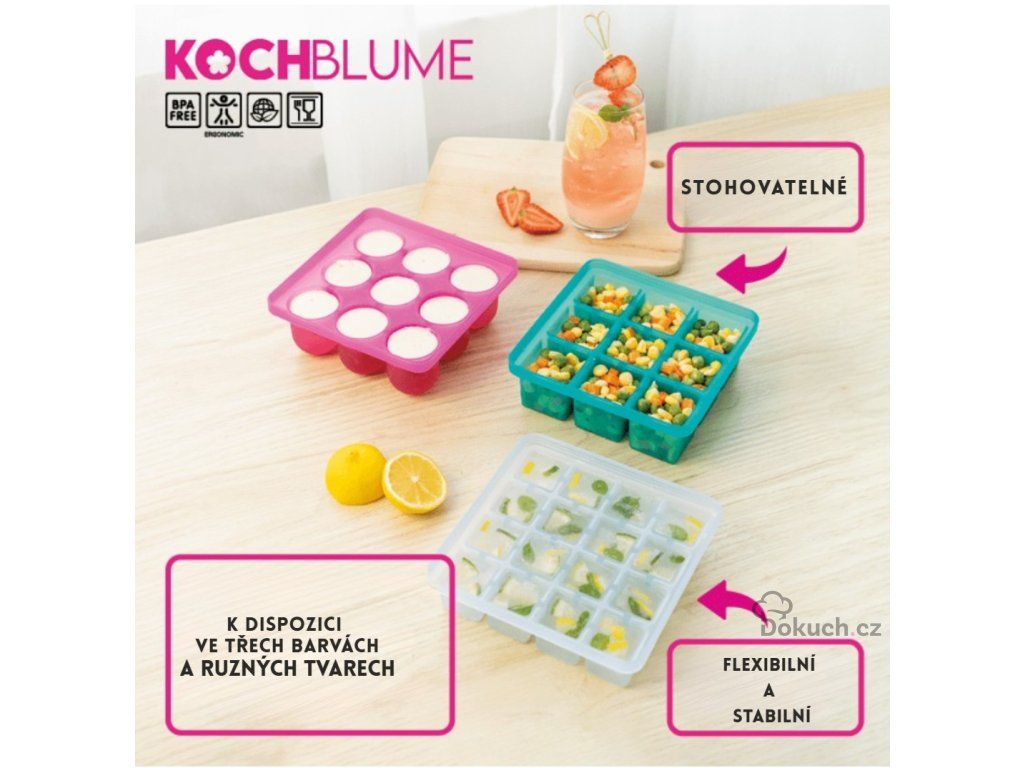 Flexibilní, hygienické a neuvěřitelně praktické – silikonové formy na ledové kostky Kochblume vám usnadní přípravu nápojů i skladování malých porcí surovin.
