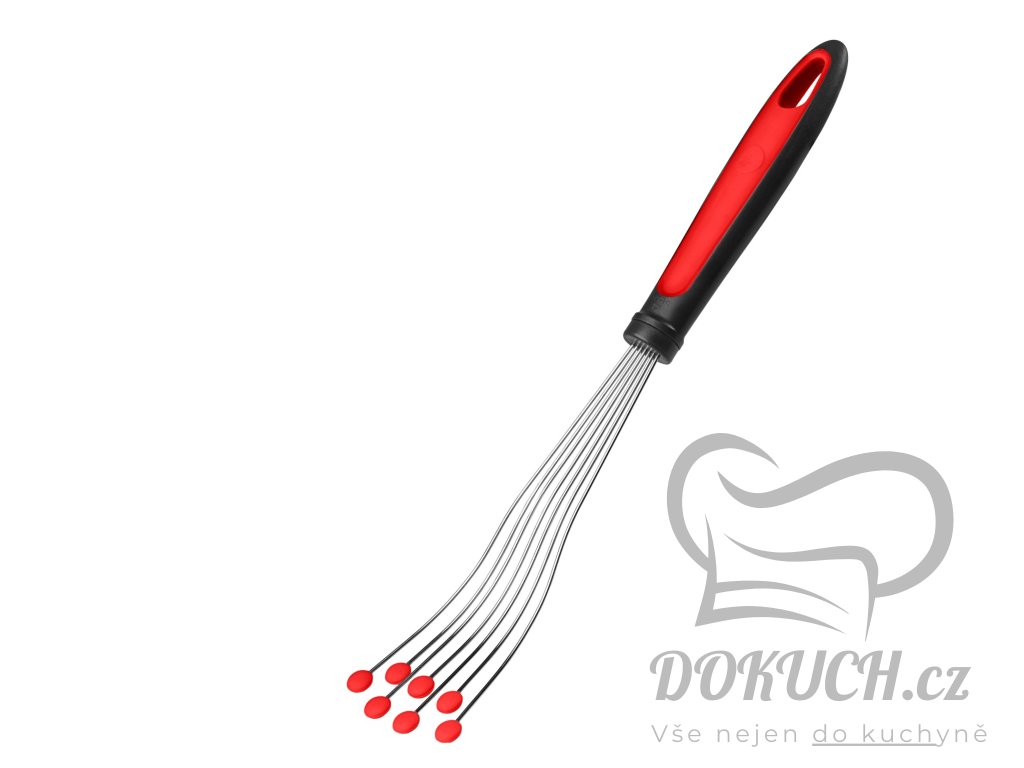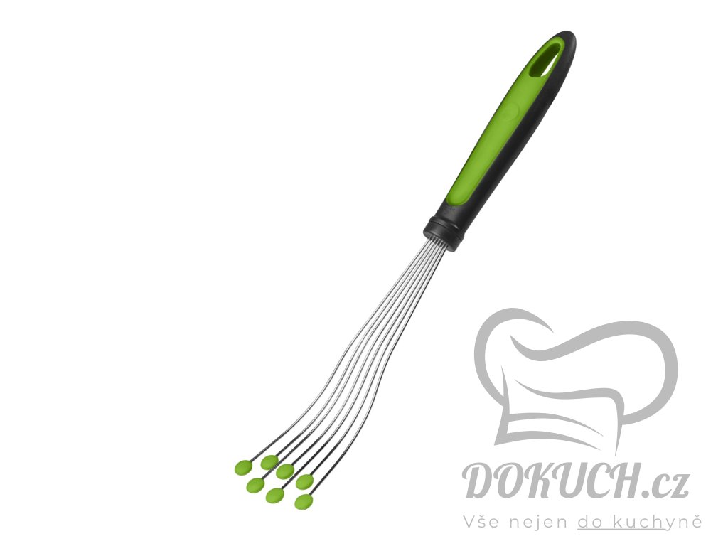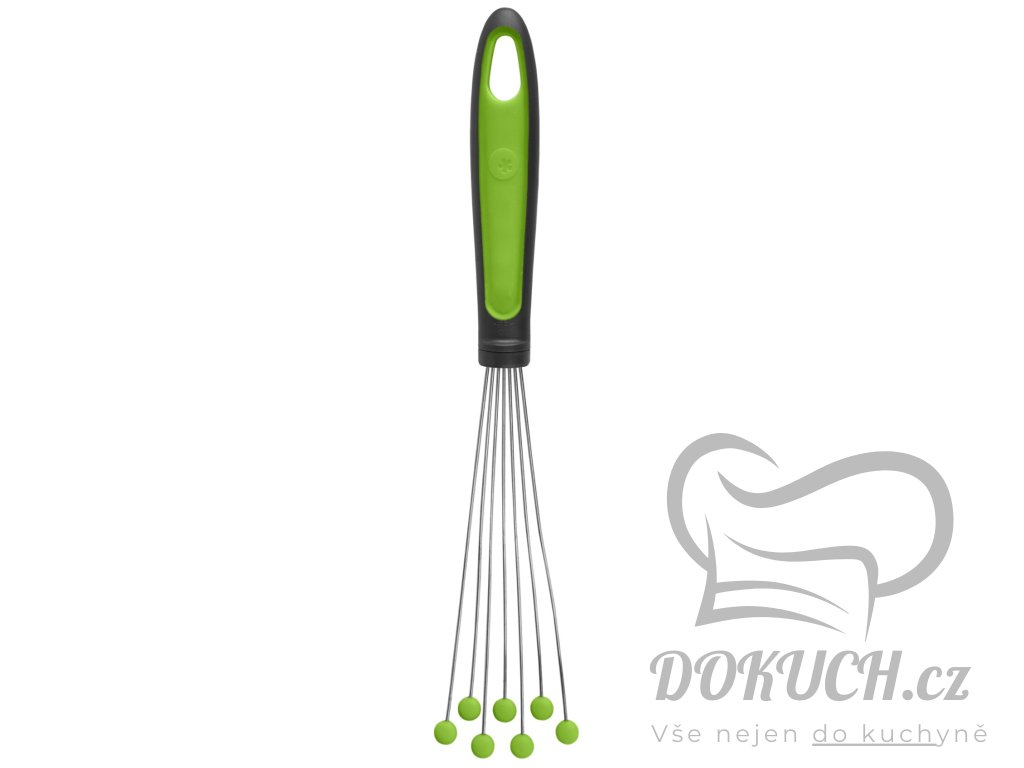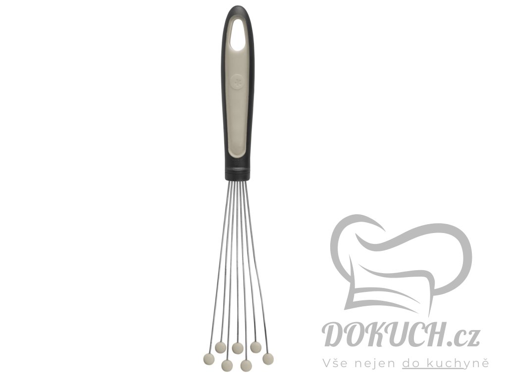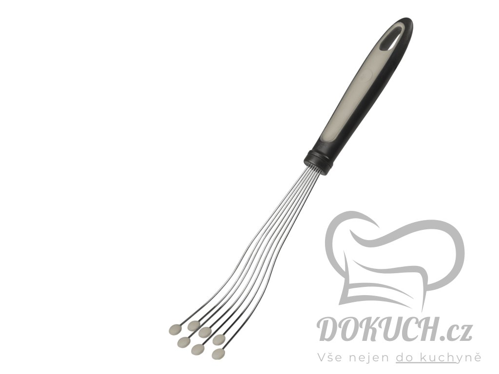 Perfektní pro přípravu zálivek, marinád, vajec, dipů i omáček – všechno promíchá rychle, rovnoměrně a bez námahy. Silikonové kuličky na koncích drátů zajišťují jemné, ale důkladné promíchání a zároveň chrání vaše nádobí před poškrábáním.