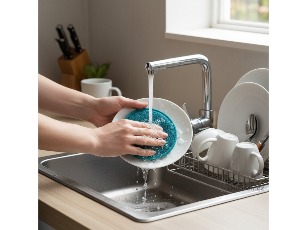 Drsnější strana je určena pro odstranění zaschlých zbytků jídla, mastnoty nebo připálenin. Pomůže uvolnit nečistoty z nádobí, hrnců nebo pracovních ploch.
