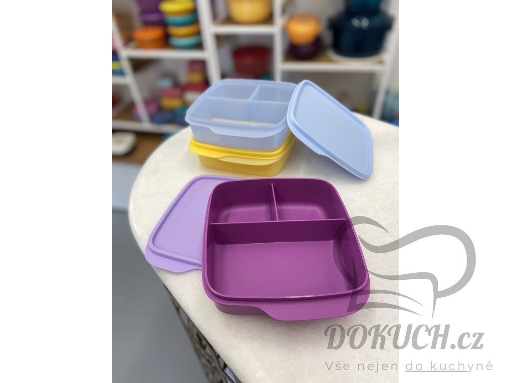 ✔️ Rozdělený na 3 přihrádky, takže ovoce, sendvič i něco sladkého má své místo