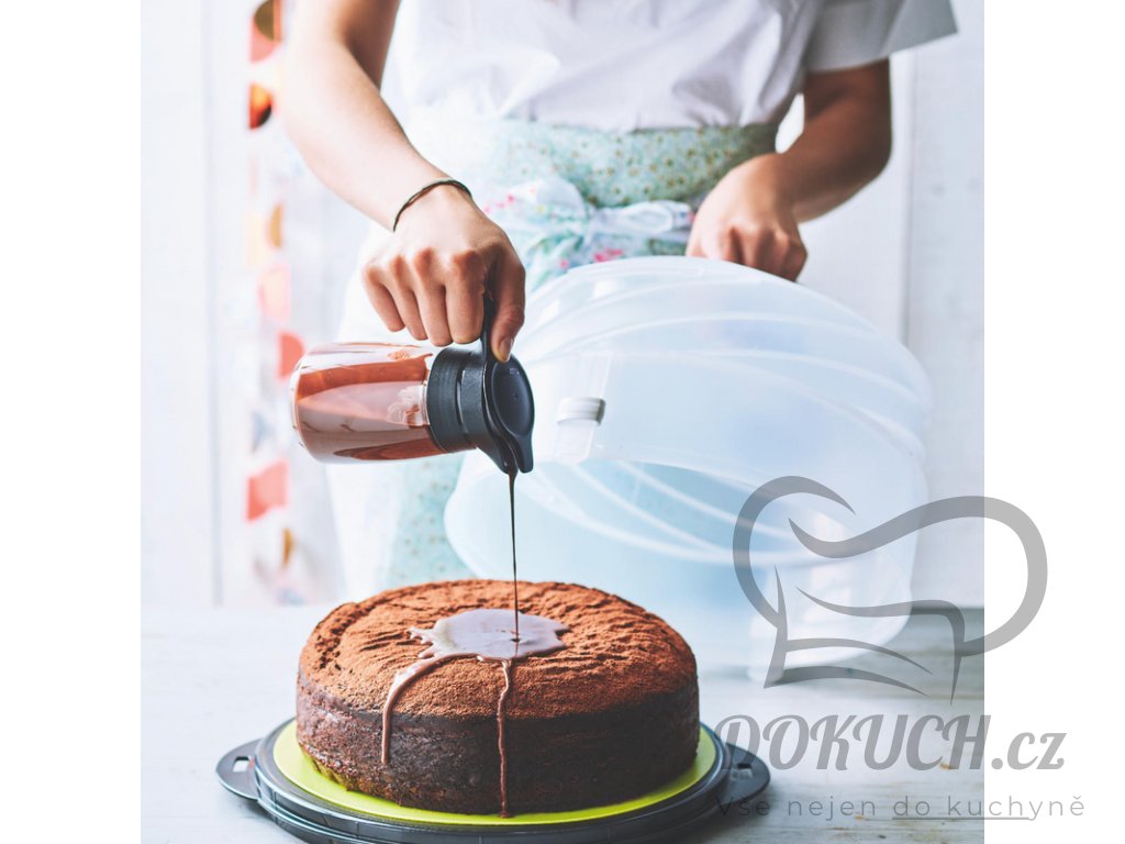 Tento kulatý servírovací podnos s průhledným víkem patří mezi nejoblíbenější výrobky Tupperware. Díky chytrému systému vysouvání můžete zvýšit výšku víka až o 6,5 cm – takže snadno uložíte i vysoký dort nebo vrstvený zákusek.