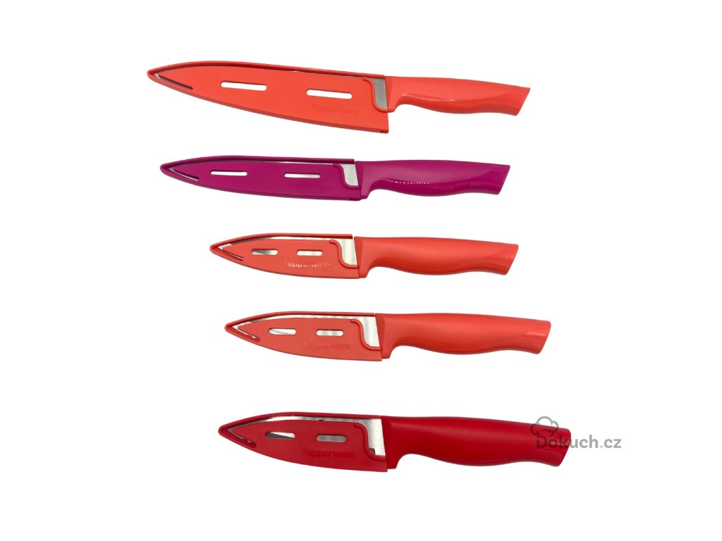 Každý nůž je vybaven ochranným krytem, který chrání ostří před otupením a zároveň zvyšuje bezpečnost při skladování.