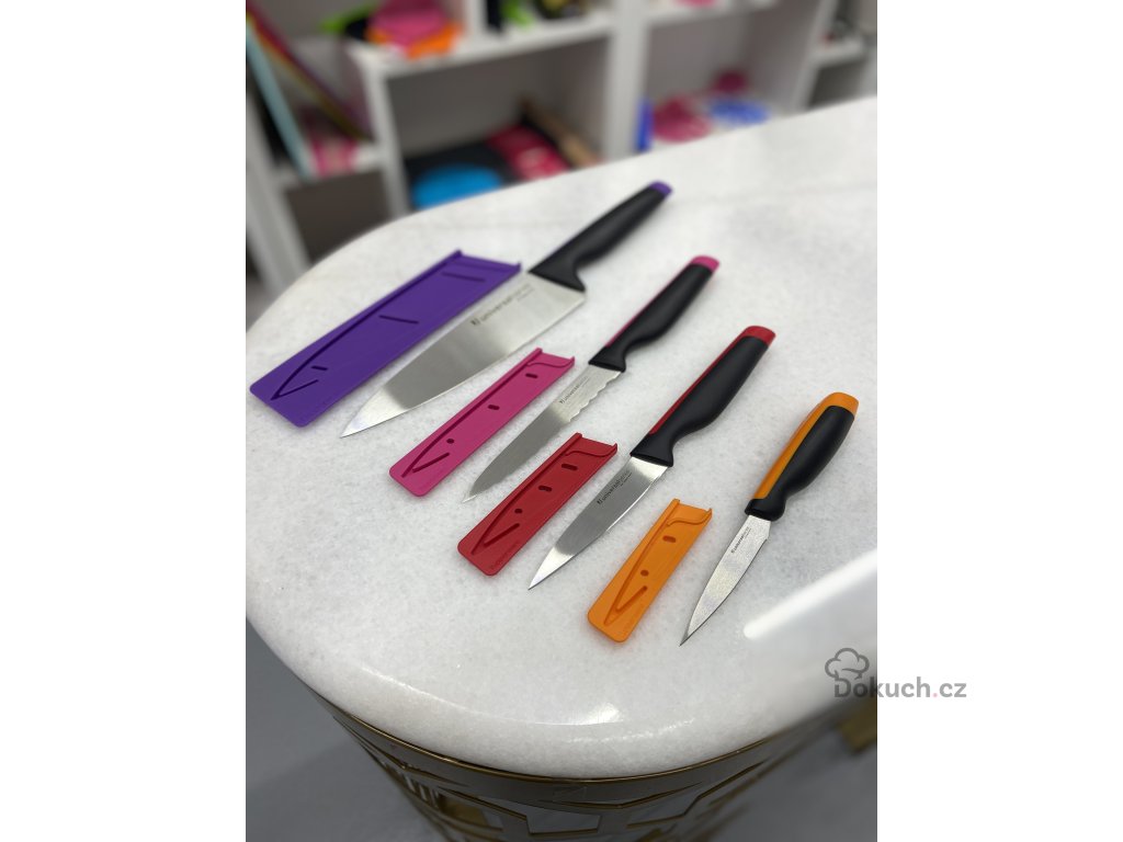 Typickým znakem této řady je barevné zakončení rukojetí, díky kterému jednotlivé nože snadno rozeznáte i při uložení v zásuvce. Každý nůž je navíc dodáván s nasouvací ochrannou krytkou na čepel, která chrání ostří i uživatele při skladování.