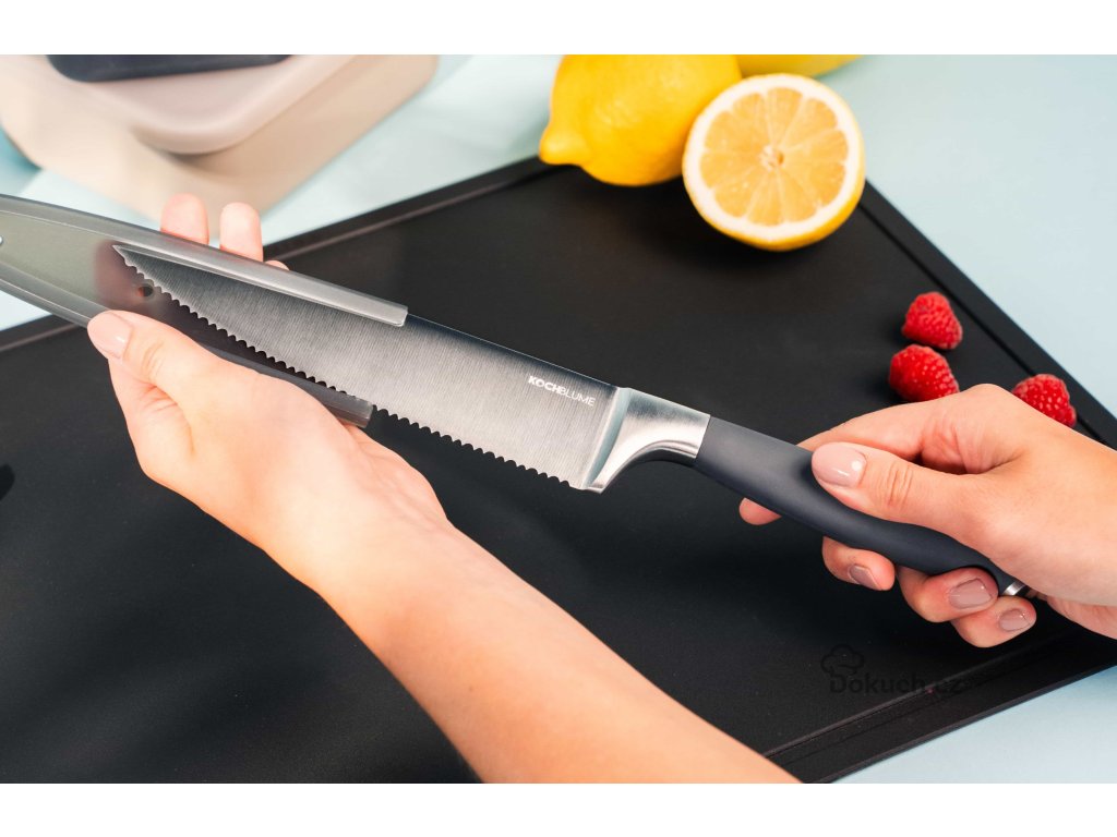 Nůž šéfkuchaře se zubatým ostřím