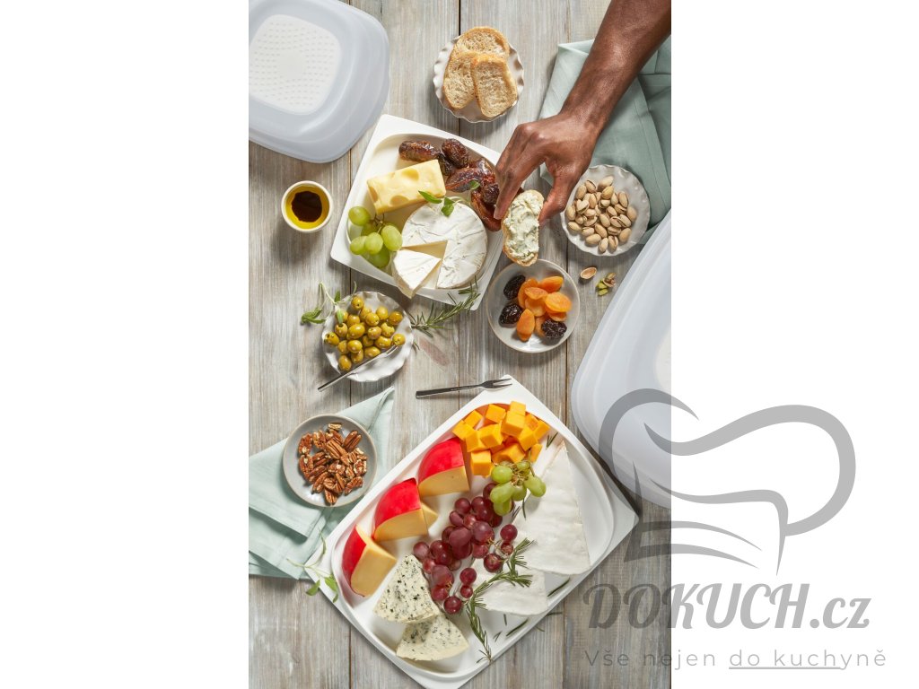 - podnos lze využít z obou stran. V nádobě tak lze uchovávat i vyšší sýry.