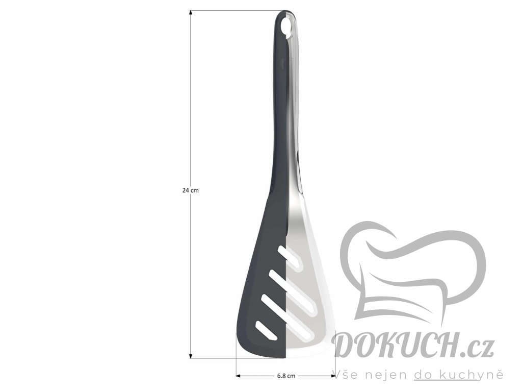 Tato obracečka zaujme nejen svou funkčností, ale i vysoce kvalitním zpracováním. Díky masivnímu jádru z nerezové oceli je rozměrově stabilní, odolná a robustní, zatímco silikonový povlak spolehlivě chrání povrch vaší pánve. Silikon bezpečný pro potraviny zajišťuje, že špachtli můžete nechat v hrnci nebo pánvi, aniž byste se museli obávat, že se o rukojeť popálíte.