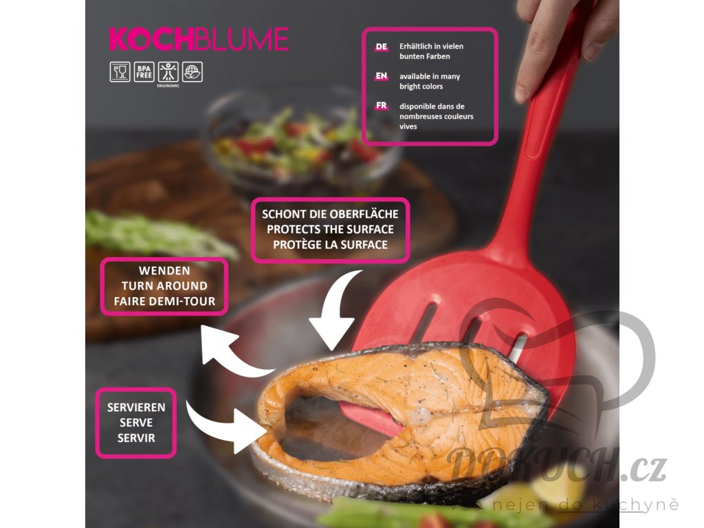 Na rozdíl od našich klasických modelů je Obracečka široká Kochblume ideálním profesionálem pro větší úkoly. Díky velké ploše je obzvláště oblíbený pro palačinky, bramboráky, omelety nebo ryby.