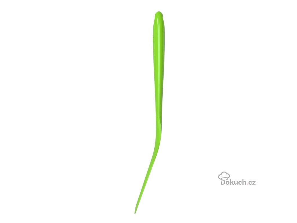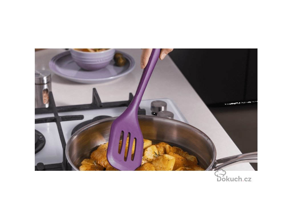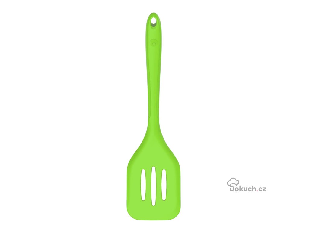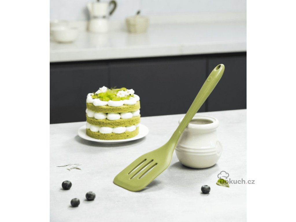 Obracečka je vyrobena s pevným jádrem z nerezové oceli, které zajišťuje stabilitu a odolnost. Silikonový povrch chrání vaše nádobí před poškrábáním a umožňuje ponechat obracečku v horké pánvi, aniž byste riskovali popálení.