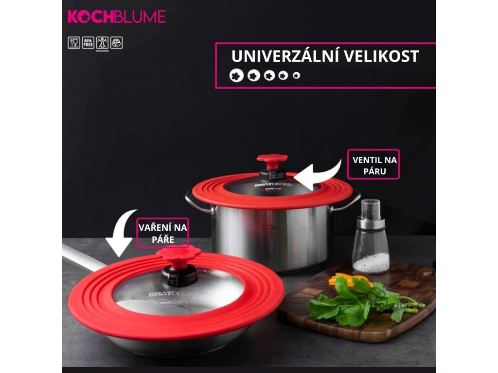 Smažení bez popálení, šťavnaté uvnitř a krásně křupavé na povrchu. Přesně to umožňuje univerzální poklice s parním ventilem Kochblume. Chytrá konstrukce udrží teplo tam, kde má být – v pánvi – a zároveň automaticky reguluje únik páry. Výsledkem je rychlejší vaření, méně nepořádku a lepší chuť.