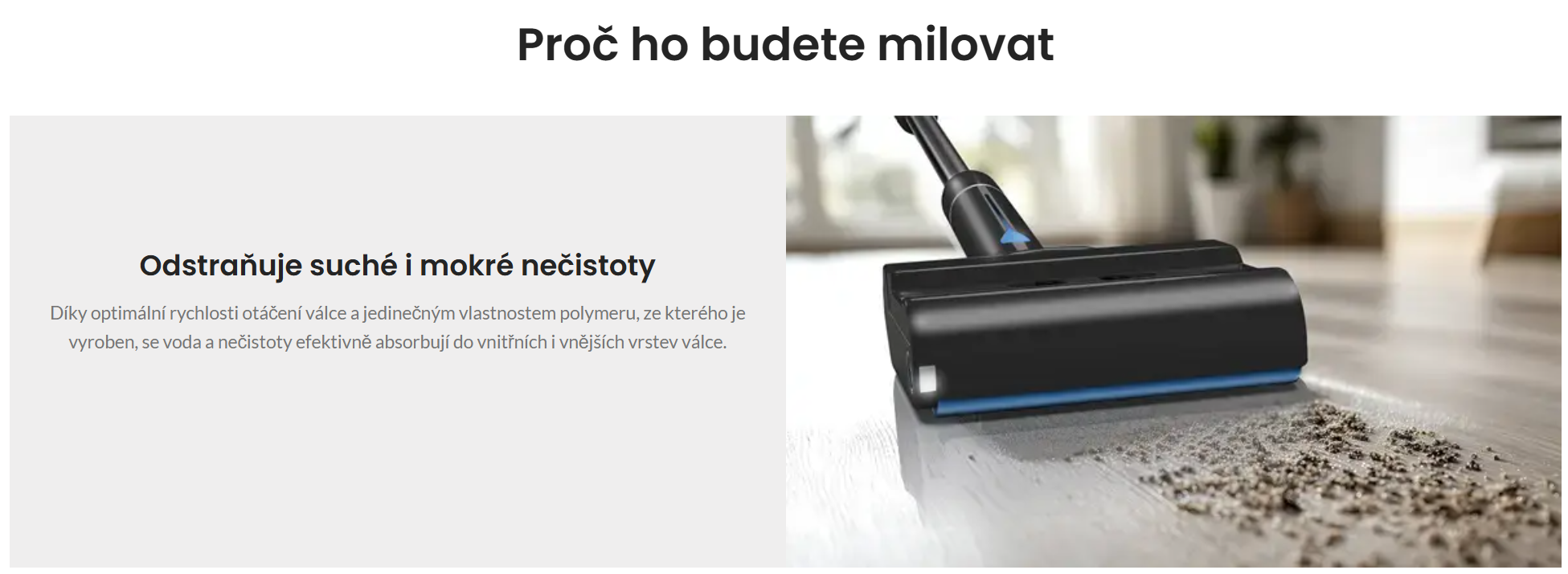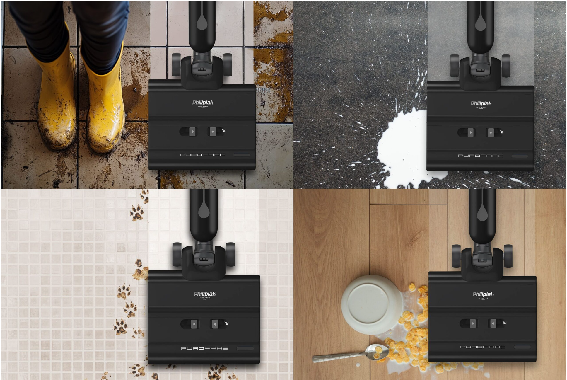 Purofare je lehký a obratný čisticí pomocník s polymerovým mycím válcem, který spolehlivě odstraňuje suché a mokré nečistoty z tvrdých podlah.