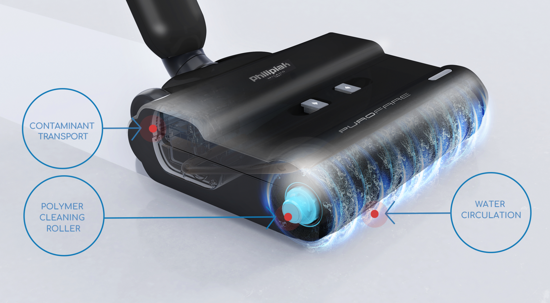 Díky inovatívní bionické technologii zároveň myje, vysává a sbírá vodu, přičemž zanechává vaši podlahu perfektně čistou a téměř suchou. Philipiak Purofare byl navržen tak, aby efektivně vyčistil všechny typy tvrdých podlah a zanechal je zářivě lesklé a hygienicky čisté – bez šmouh, skvrn nebo přebytečné vody.