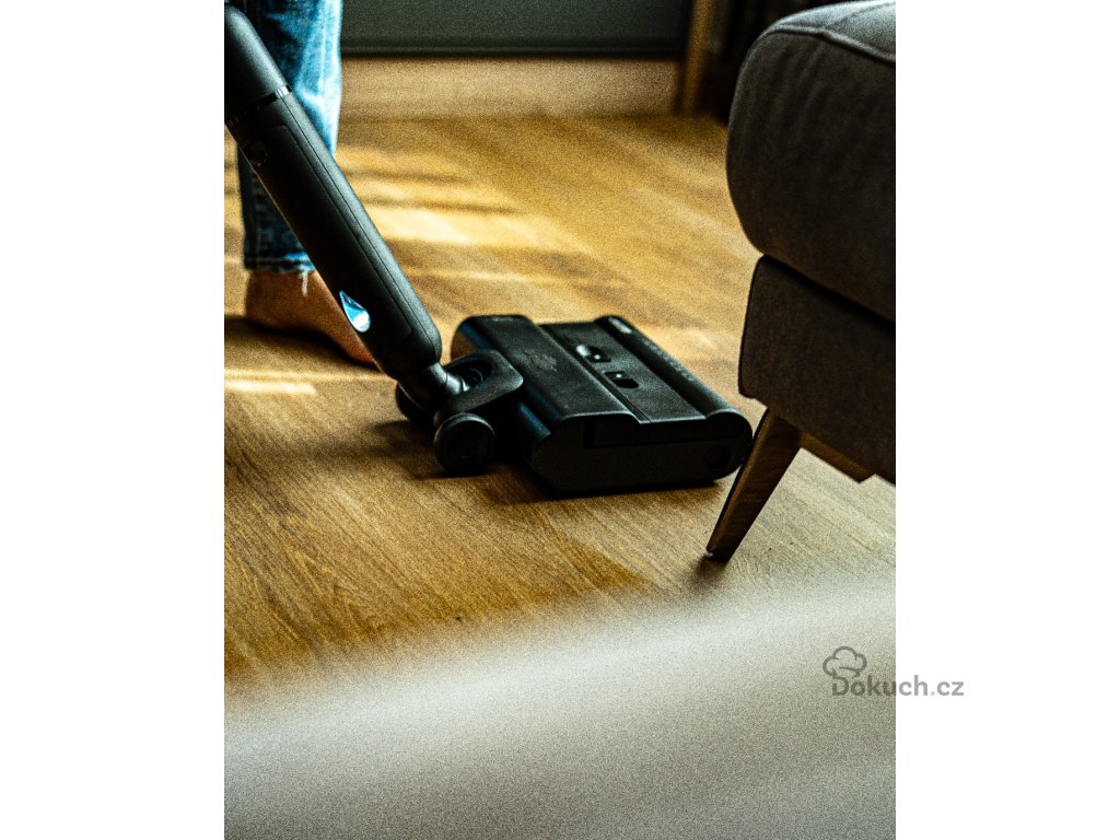 Snížili jsme výšku hlavy purofare na 8 cm, co vám umožňuje položit ji zcela naplocho a otáčet rukojetí pro přizpůsobení směru čištění v těžko dostupných prostorech, například pod postelí.
