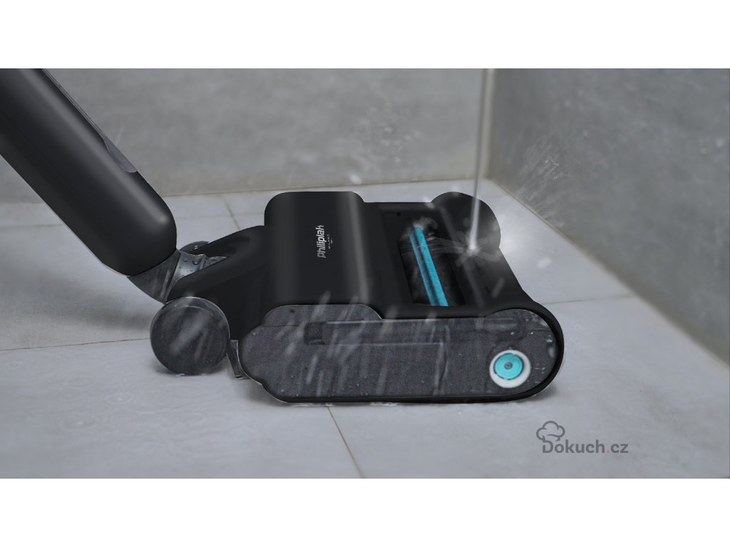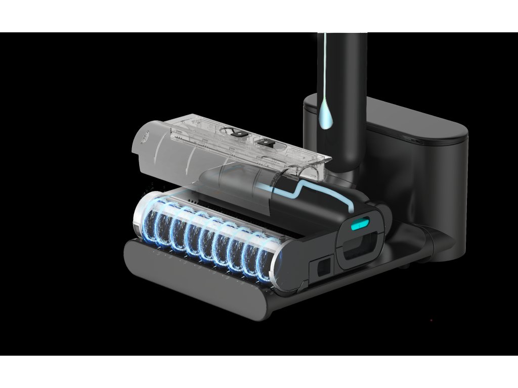 Přístroj zároveň průběžně promývá čisticí válec čistou elektrolyzovanou vodou, takže na podlahu jde vždy jen čistá voda – ne ta, kterou jste už vytírali.