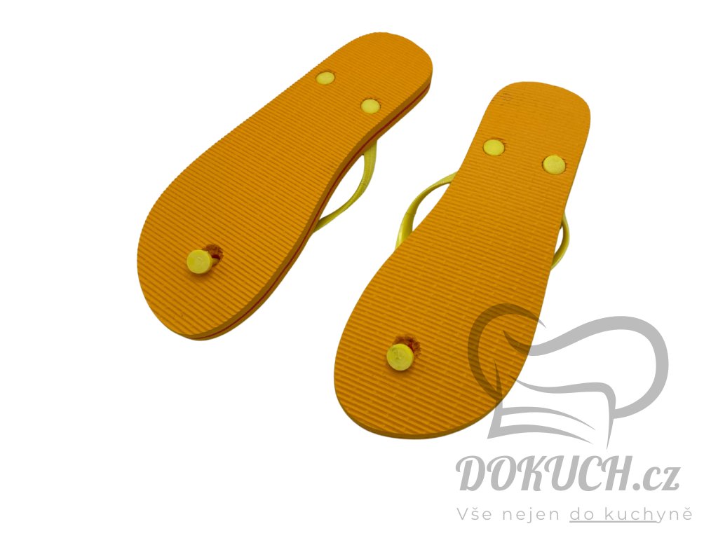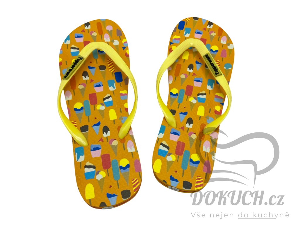 Stylové žabky ve slunečně žluté barvě s veselým motivem zmrzliny vám vykouzlí úsměv na tváři pokaždé, když si je obujete.