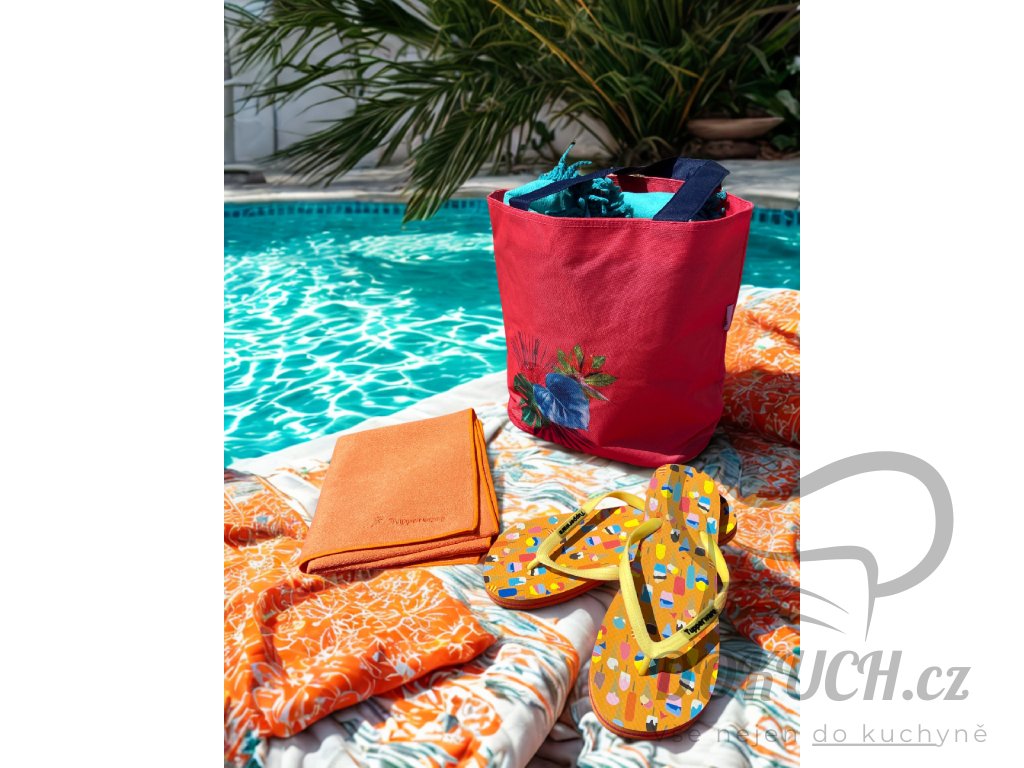 Díky univerzální velikosti (36–40) a pružným gumovým popruhům skvěle padnou většině nohou a budou spolehlivým společníkem k bazénu, na pláž i na cesty. Lehoučké, skladné a nepostradatelné pro každou letní pohodu.