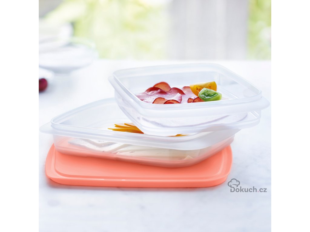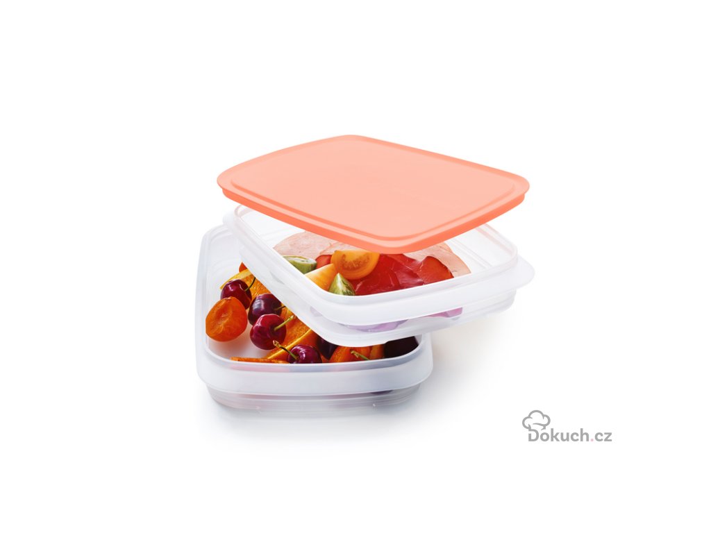 - Čiré nádoby pasují jedna na druhou podle toho, jak zrovna potřebujete. Jedna nádoba zapadne do druhé, takže slouží také jako víko, jedna na druhé. Potřebujete tak jenom jedno víko k uzavření horní nádoby.