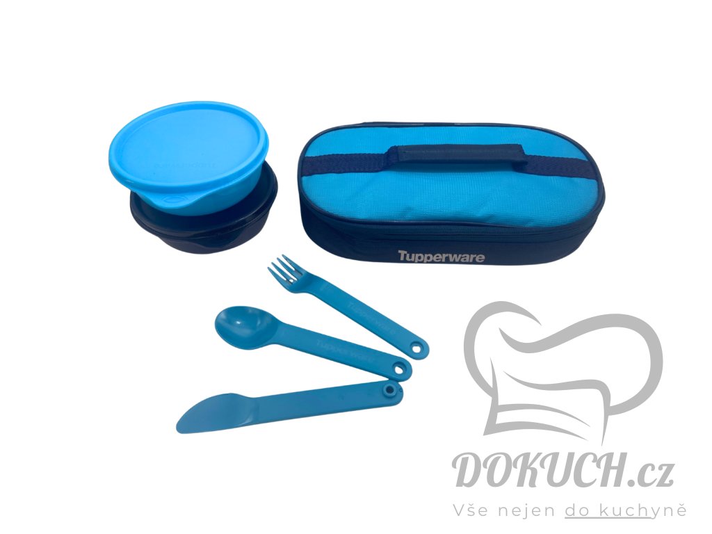 🍴 Cestovní příbor (vidlička, lžička, nůž) – z kvalitního odolného plastu Tupperware, pohodlně uložený v taštičce.