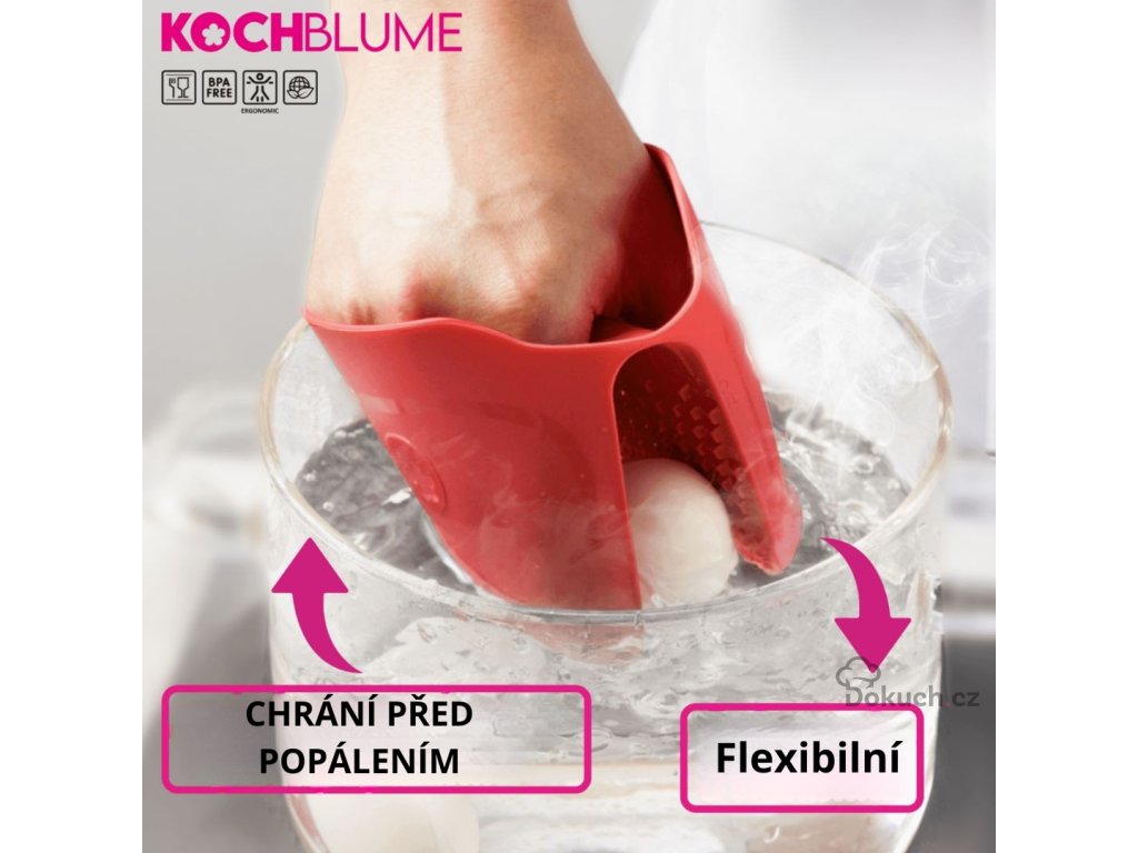 Buďte v kuchyni v bezpečí! Naše tepelná ochrana prstů Kochblume je rychlá, flexibilní a vždy připravená k použití. Perfektní pro manipulaci s horkými plechy, zapékacími miskami nebo dalšími nádobami přímo z trouby či grilu.