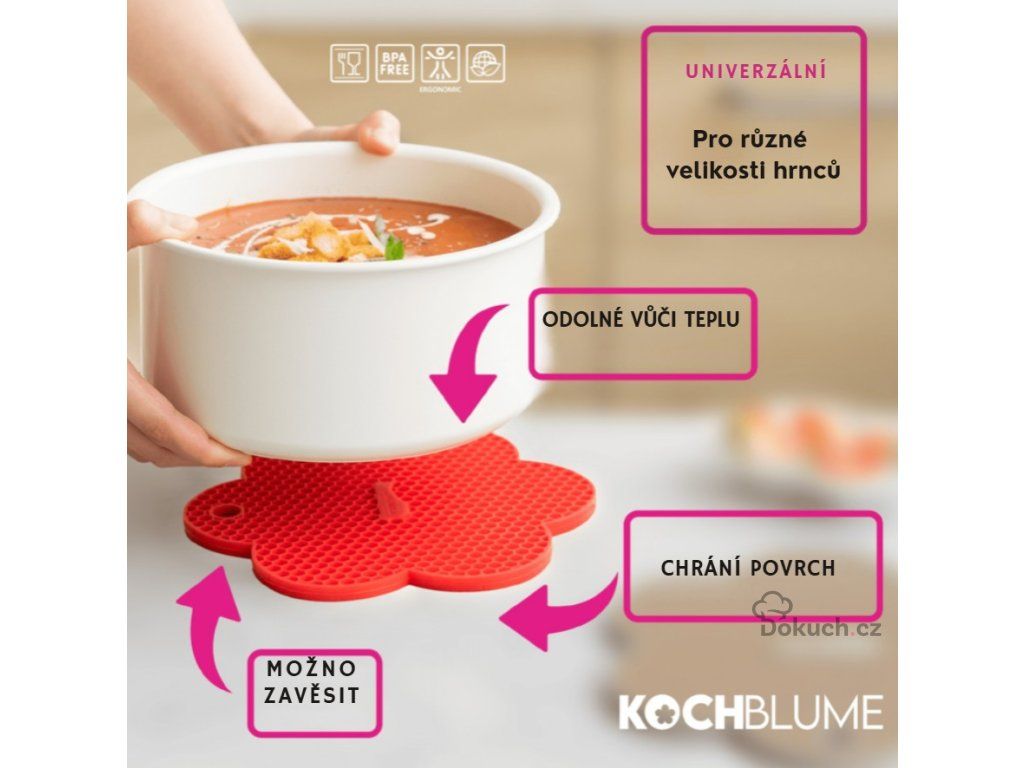 Tahle podložka je stylovým a praktickým doplňkem, který ochrání, usnadní práci a krásně doplní barevnou kuchyňskou výbavu Kochblume.