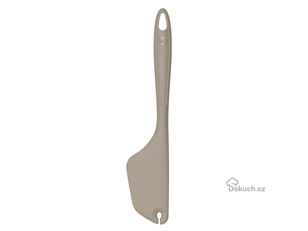 Naše všestranná silikonová stěrka je pomocník, který v kuchyni zachrání každou situaci. Zanechá hrnce i misky téměř čisté – bez nutnosti oplachování. Má navíc malé praktické očko, které si poradí se zbytky těsta po hnětení nebo míchání v kuchyňském robotu.