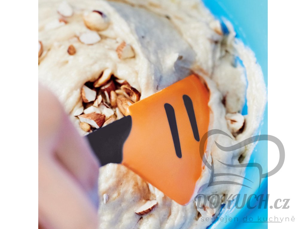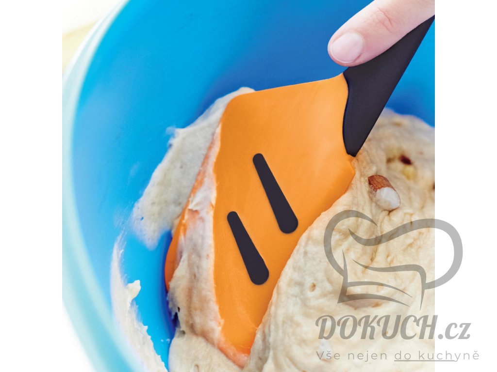 Silikonová stěrka je velmi pružná a pevná zároveň a je tak ideálním pomocníkem na lehké míchání a vytření každé mísy či nádobí opravdu dočista.