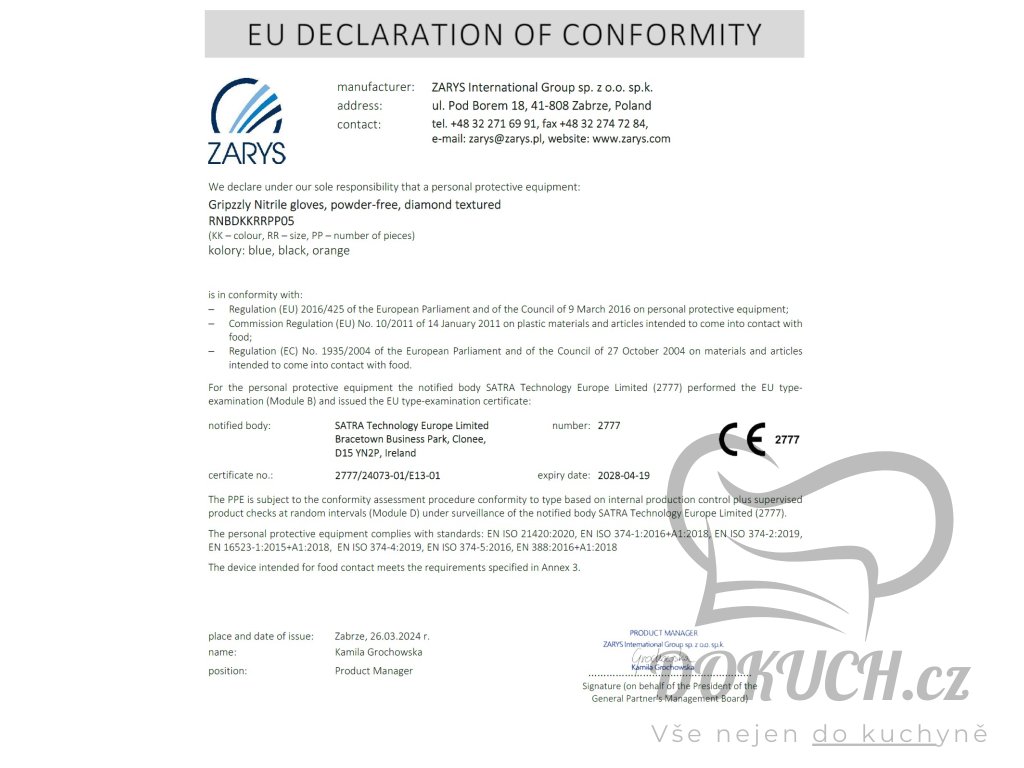 Složení/Nebezpečné látky: Některé rukavice mohou obsahovat složky, které mohou u citlivých osob vyvolat alergické reakce nebo podráždění. Pokud k tomu dojde, vyhledejte okamžitou lékařskou pomoc.